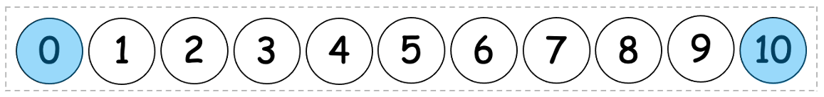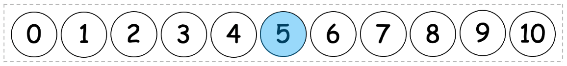 Sie benötigen nur die Zahlenreihe und ein Plättchen. Das Plättchen wird auf ein beliebiges Feld (z. B. 5) gelegt.